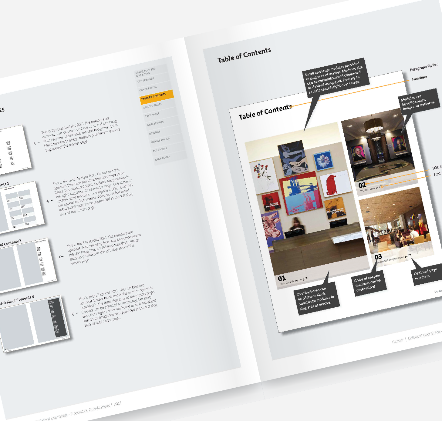 Most of the firm's collateral created using these templates is proprietary. Here are some proposal/qualifications cover designs, a brochure layout, and some introductory presentation slides all using the template system.